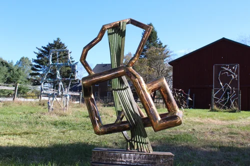 I weld, torch and force materials into submission while working with the tao. My tools, many inherited from my father, seem to know the way. Copper, steel, bronze, iron and gold leaf are my alchemy. Upcycled, repurposed art. Frozen music is what I call it. A jazz riff. Prices available upon request.
